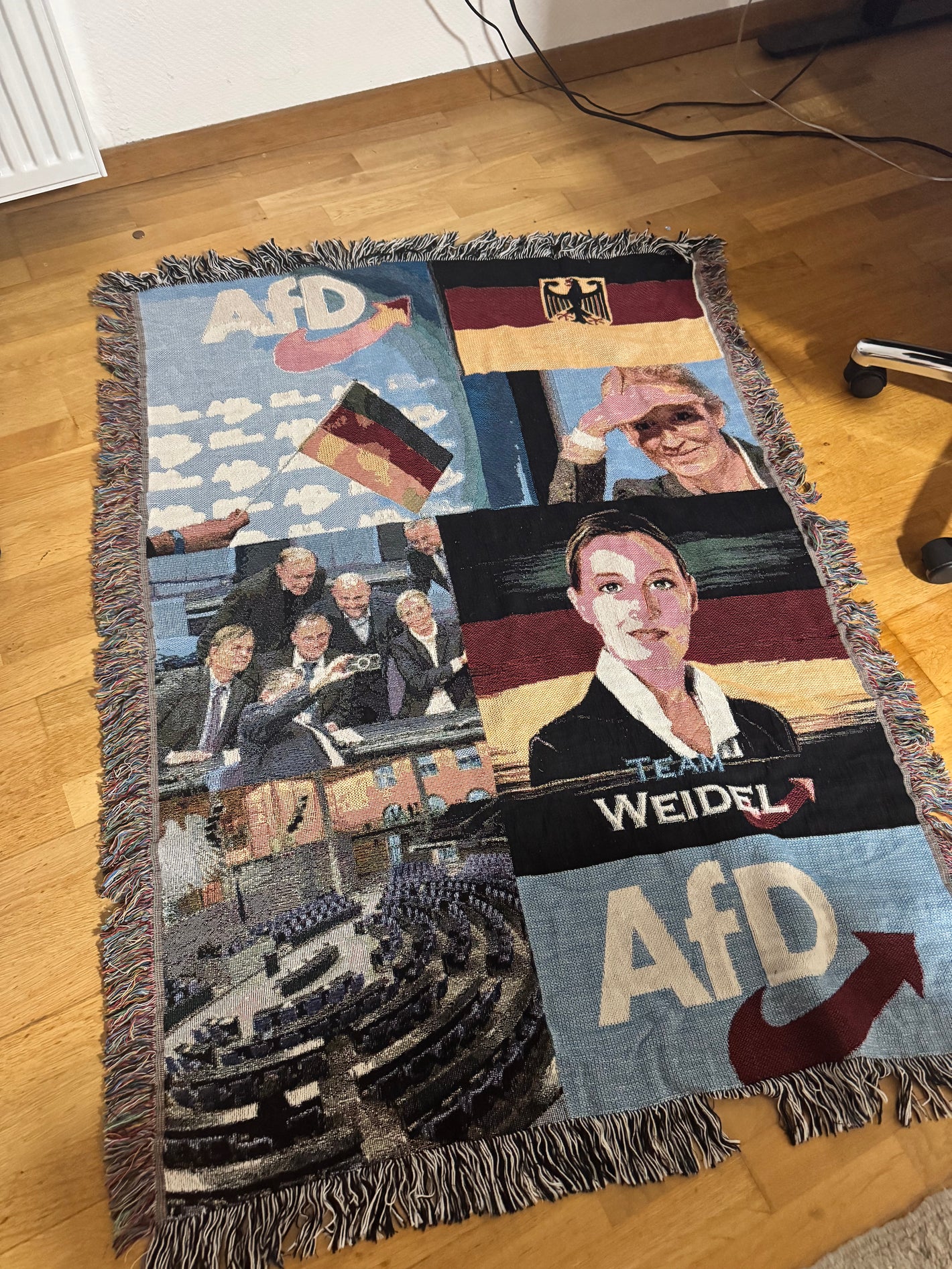 Ich liebe die AfD Decke. Sie ist richtig warm und kuschelig. Man merkt richtig die Qualität. Opa macht einen guten Job
